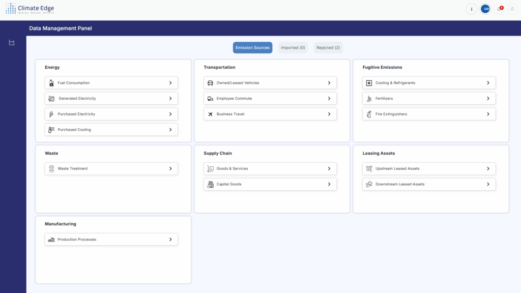Built with intelligent data governance and role-based workflows, Climate Edge transforms complex emissions tracking into streamlined operations that ensure accuracy and strategic decision-making capabilities for organizations of every size.